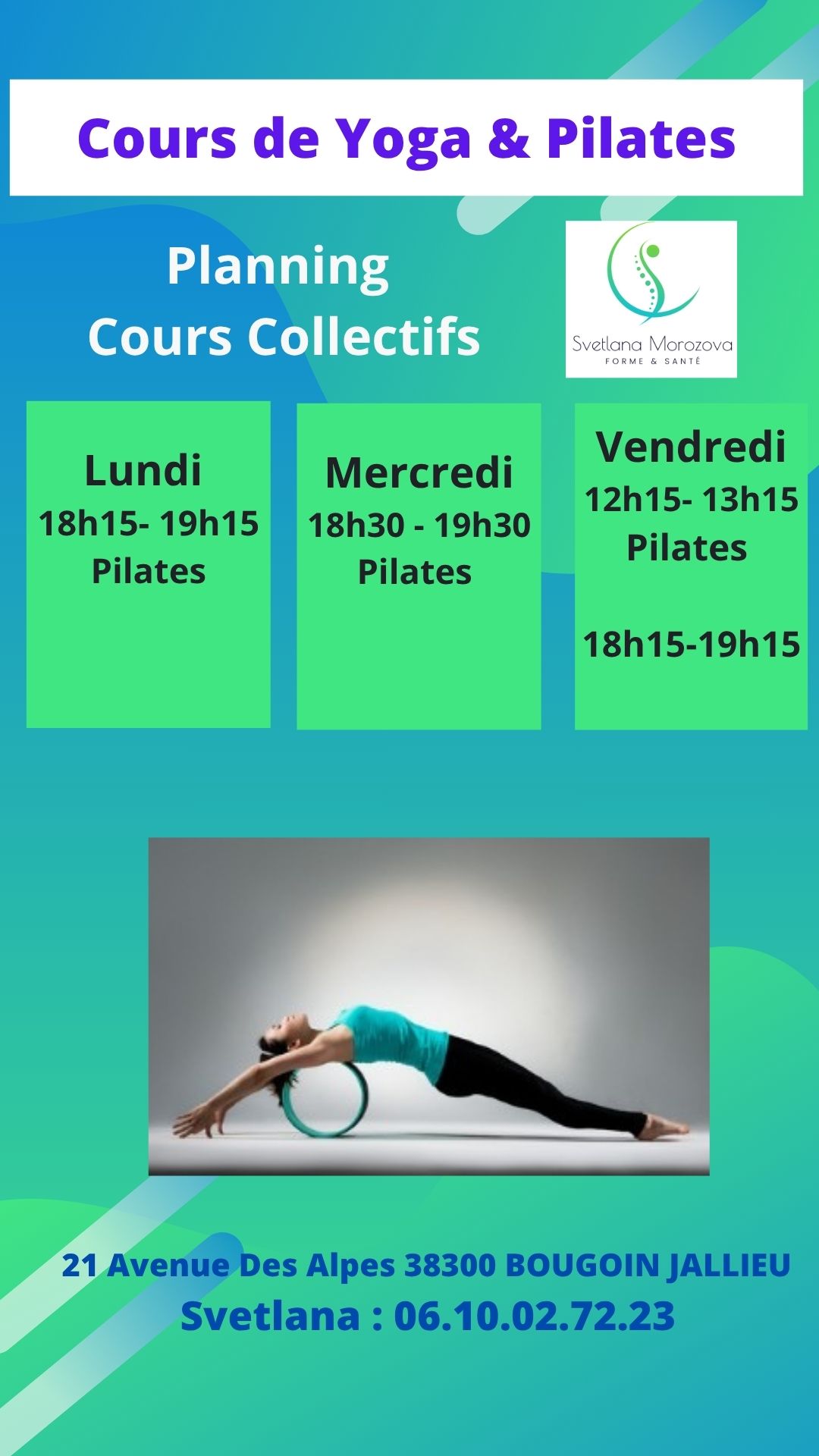 Je vous propose des cours collectifs, ouverts à tous, dans lesquels vous pourrez travailler à plusieurs et évoluer ensemble autour d’un objectif commun. Vous découvrirez diverses disciplines visant à développer votre bien-être physique et psychologique : telles que le Yoga, le Pilates, le Dos calme ou encore la Posturologie. Venez faire des rencontres et partager un moment sportif et convivial au centre de fitness de Bourgoin-Jallieu.